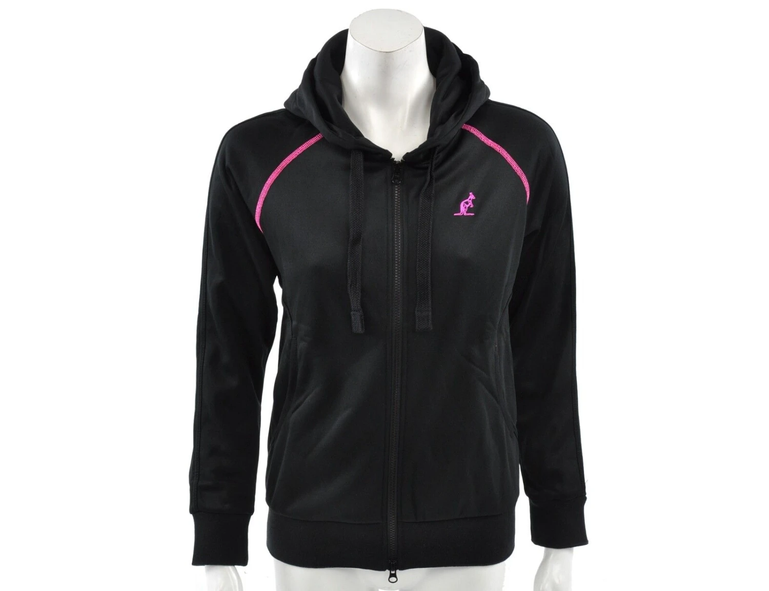 Die Australian Women Jacket ist eine schwarze Jacke für Damen. Das Australian Logo auf der Brust und vereinzelte Nähte sind pink. Die Jacke hat zwei Seitentaschen, elastische Ärmelbündchen und einen elastischen Bund. Die Jacke hat eine Kapuze mit Kordelzug.