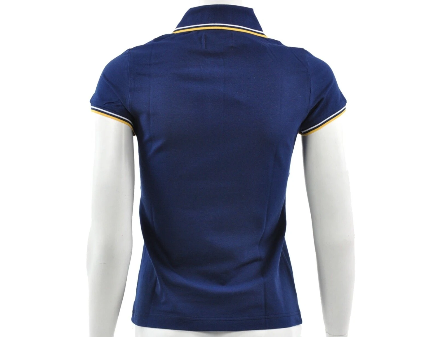 Das dunkelblaue Damen Poloshirt von Australian hat einen gerippten Kragen mit weiß/gelben Streifen und eine Knopfleiste auf der Vorderseite. Das Australian Logo ist auf der Brust.